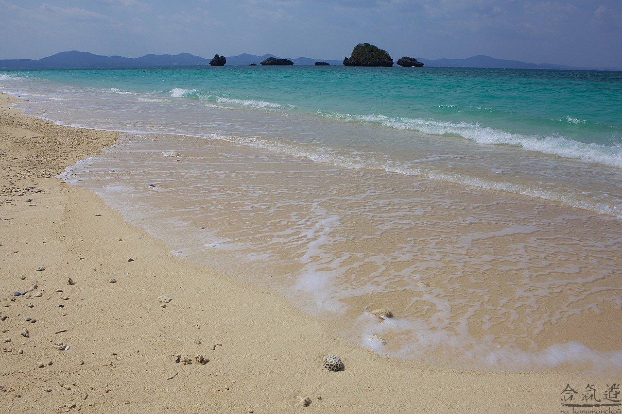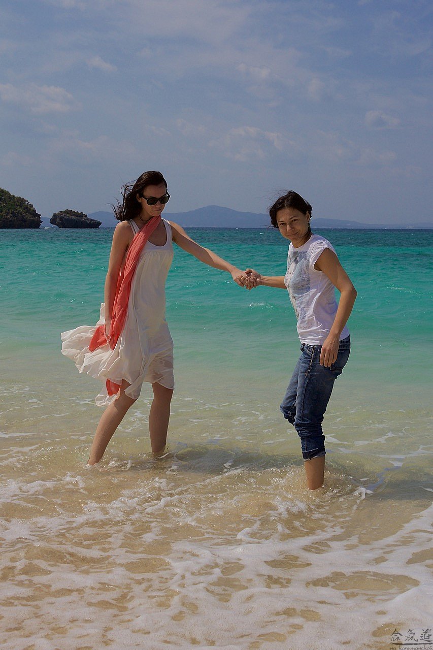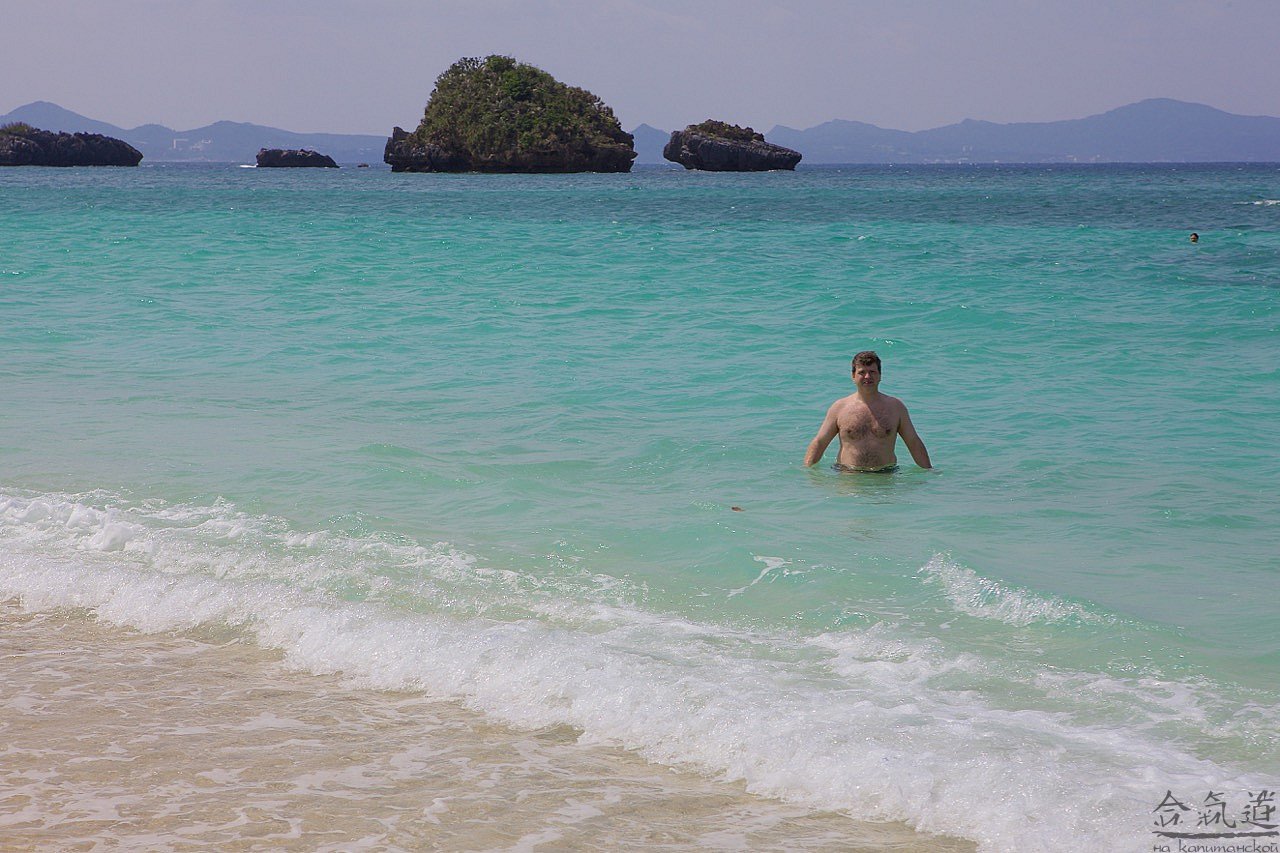 Чтобы попасть в Чюрауме, нам нужно было проехать примерно половину острова с юга на север. Это примерно 100 км - по здешним меркам, путь не близкий. Поэтому, сев в наше авто, я тут же самозабвенно отдался во власть родственников смерти, а когда, спустя несколько времени, открыл глаза, был ослеплен: яркое солнце отражалось от белоснежного песка, на который набегали бирюзовые с молочной пеной волны. Слова восторга сами вылетели из моей груди: "Твою же мать!" И уже обращаясь к водителю: "Сумимасен, чотто мате кудасай". Водитель наш был умен и предупредителен. Он все понимал с первого слова. Поэтому начал тормозить уже тогда, когда я еще обращался к природе.
