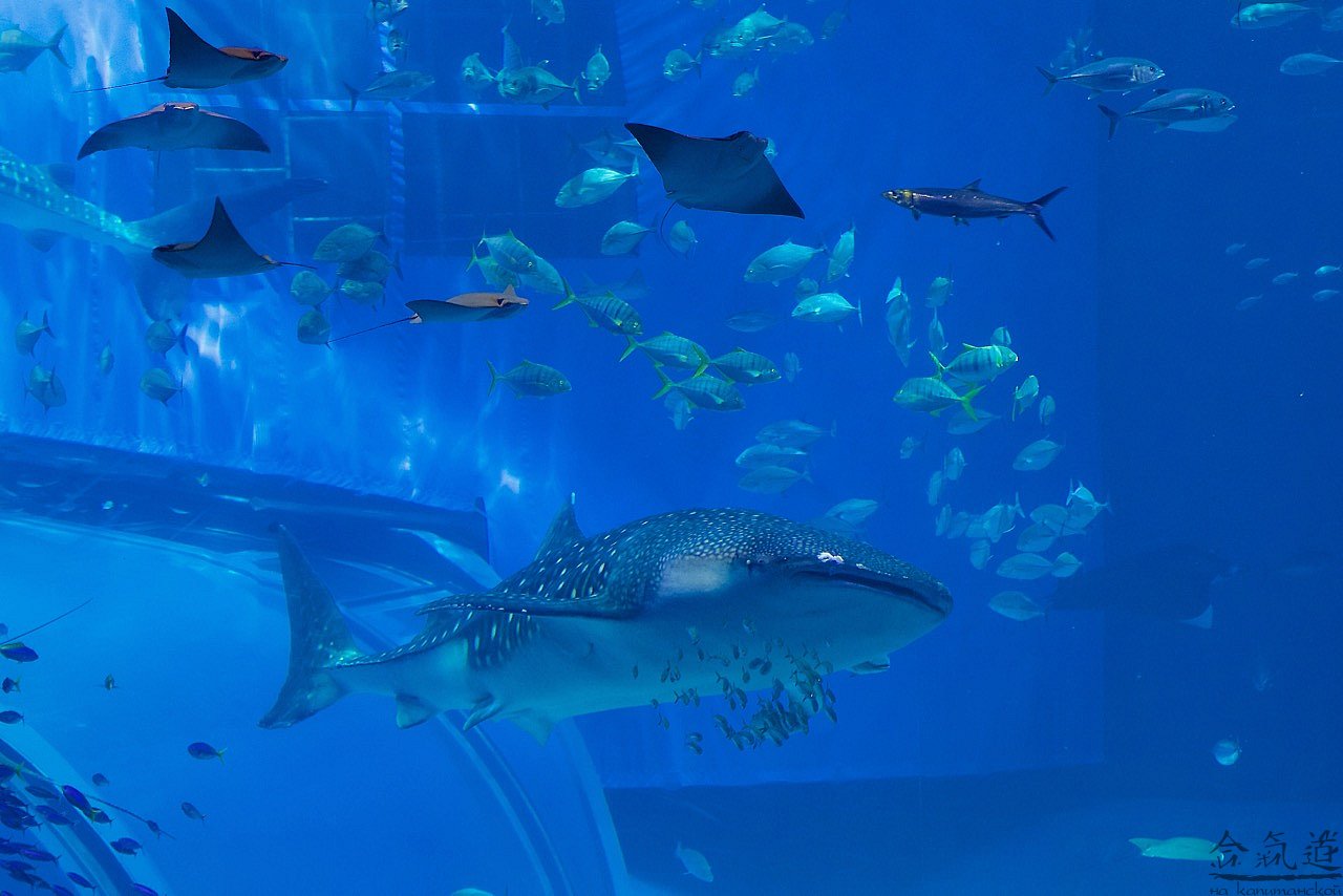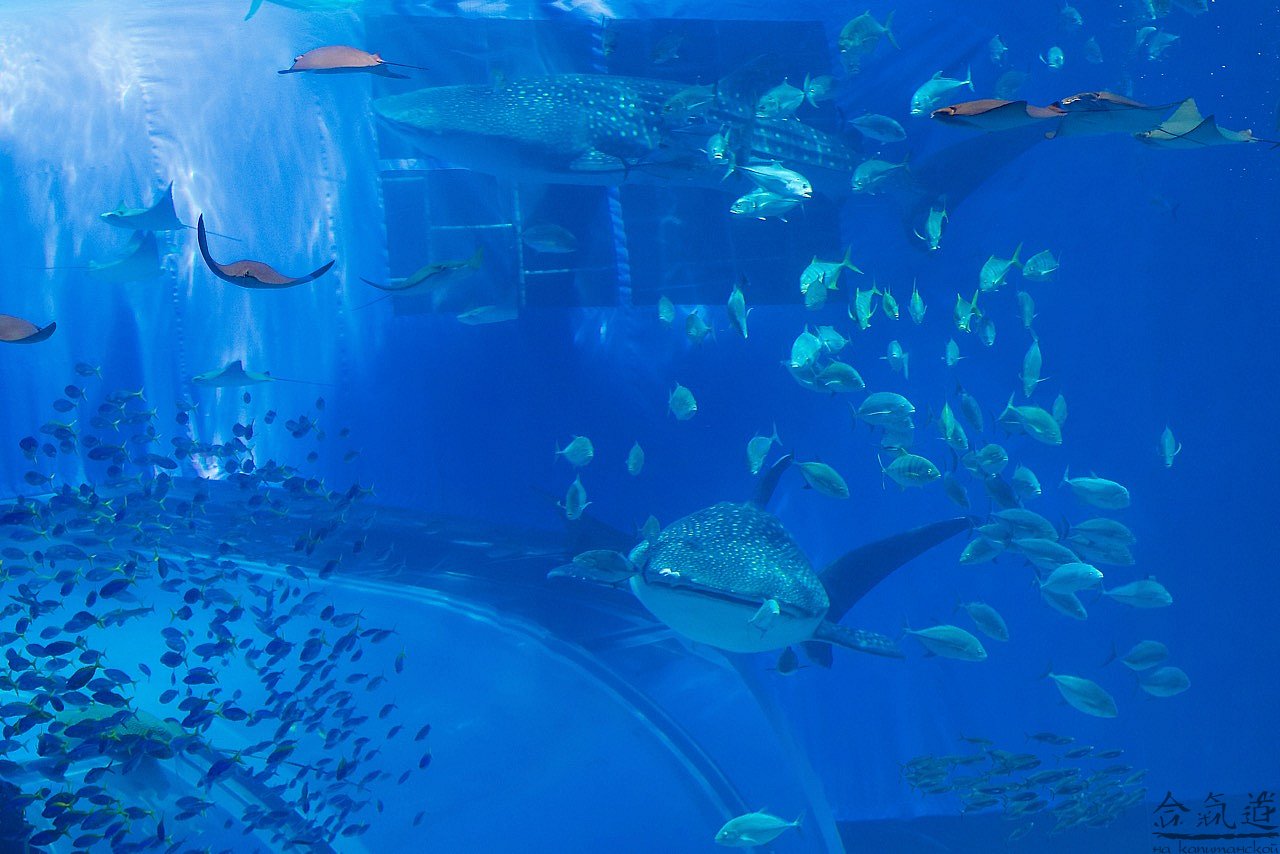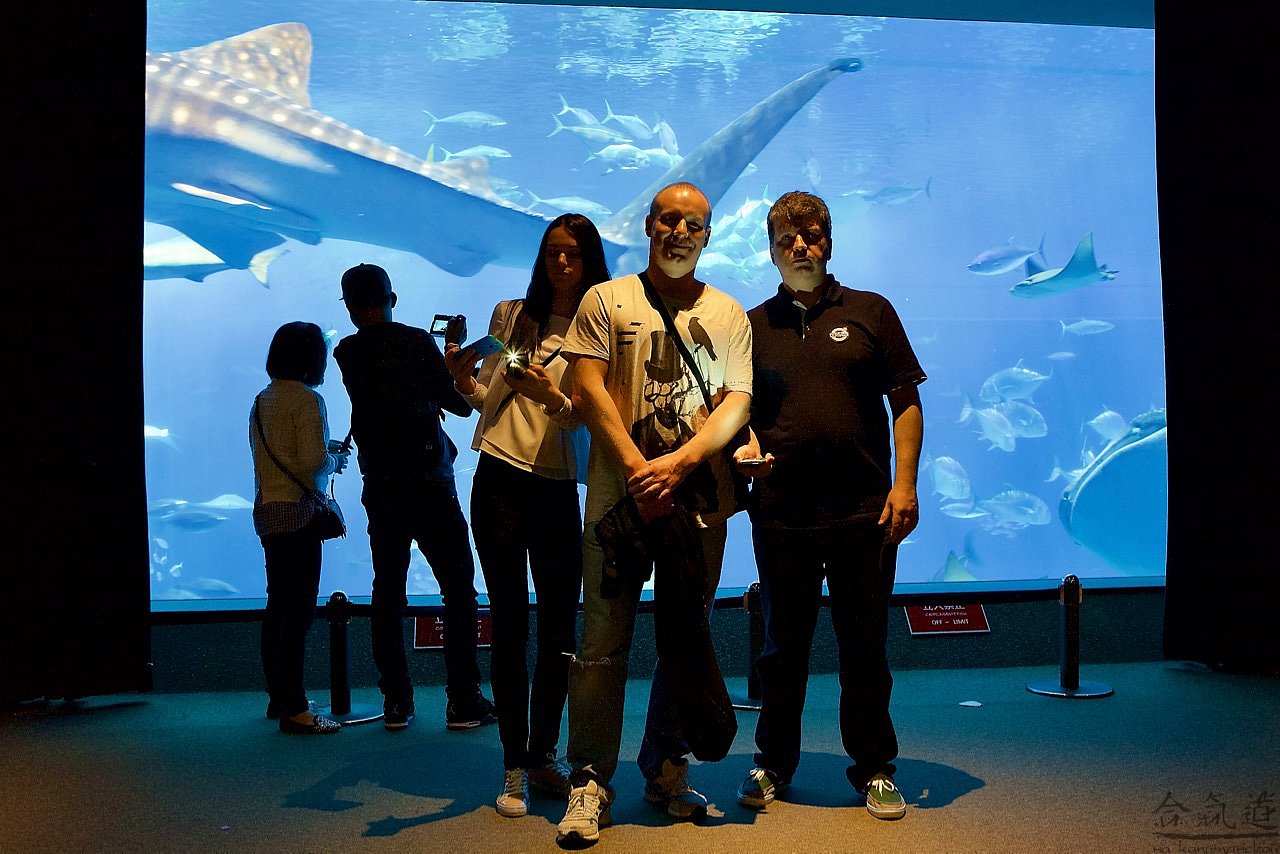Мы решили податься в Чюрауме - окинавский океанариум. Искупавшись и устроив целое шоу с переодеванием для, вобщем-то, строгих нравов японской публики, мы отправились туда, где нас заждались уже китовые акулы и морские дьяволы, тысяча чертей!