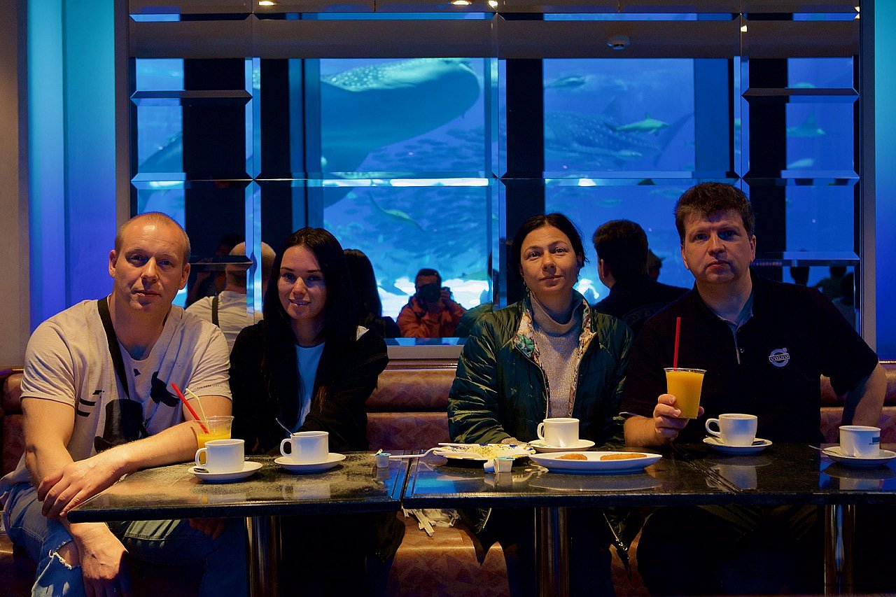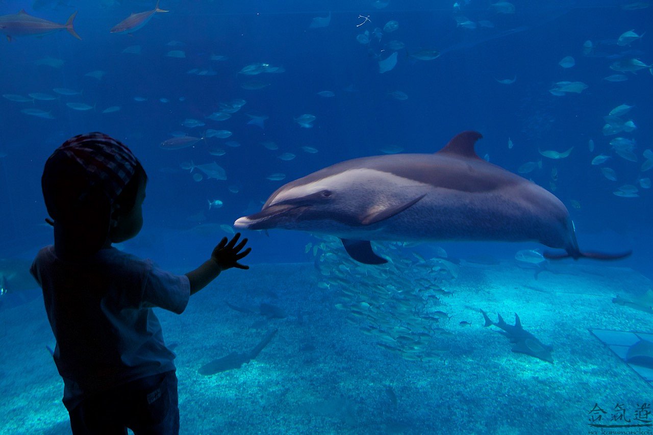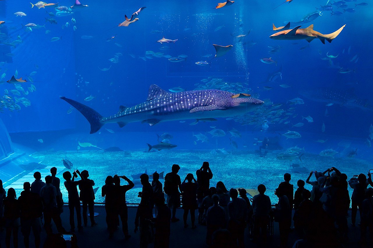 Мы решили податься в Чюрауме - окинавский океанариум. Искупавшись и устроив целое шоу с переодеванием для, вобщем-то, строгих нравов японской публики, мы отправились туда, где нас заждались уже китовые акулы и морские дьяволы, тысяча чертей!