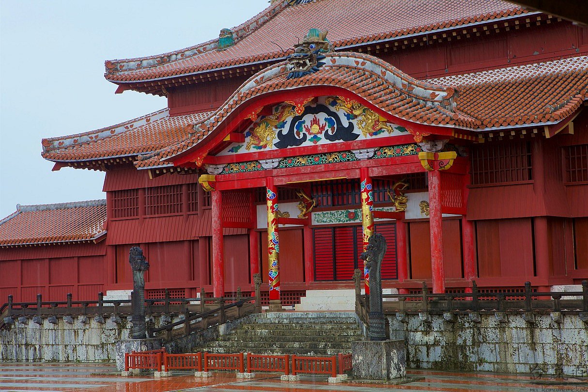 Решив вопрос с машиной, мы отправились в город Наха - административный центр префектуры Окинава. На его территории расположен замок Сюри, построенный предположительно в 13 веке. Замок, как и вся Окинава, был почти полностью разрушен американцами во время второй мировой и отстроен заново только к 1992 году. Всего сто лет тому назад в королевстве Окинава было около 300 замков, больших и маленьких. Все они сгорели в пламени "последней" - как тут называют вторую мировую - войны. Здесь шли самые кровопролитные бои с американцами. Именно здесь японцы начали применять смертников-камикадзе. И именно здесь погиб каждый четвертый житель острова. Зато сейчас канал американского военного телевидения на Окинаве транслирует забавную рекламу. Показывают красивое побережье, и голос за кадром говорит: "Внимание! Прыгать в воду со скал запрещено!!! Под водой вас ждут острые кораллы. Кораллы - главная причина гибели американских военнослужащих на Окинаве".